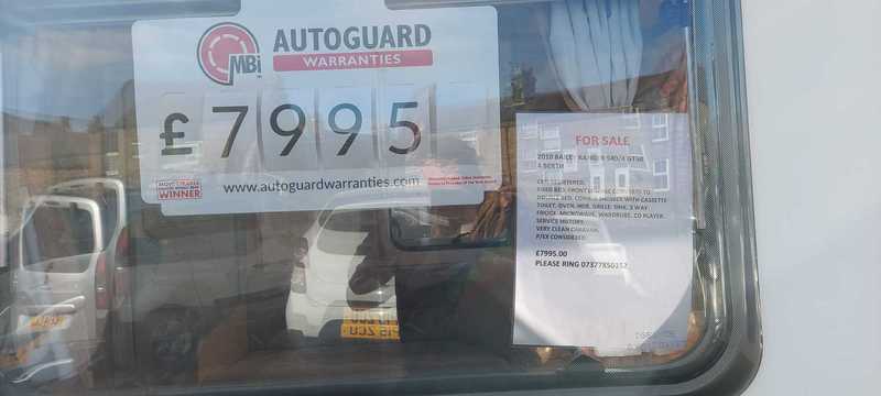 This motorhome will come with a full years MOT, 1 years Warranty, New timing belt,Full habitational check and a complete handover showing everything in working order. It has as follows; Tow bar, Awning, Electric step, Cab blinds, Flynets,Aircon, Cd player, 6 speed, Captain seats, Sun roof, Pullman bunks that convert into a double bed, Full oven,Hob & Grill, Microwave, 3 way fridge, Gas, Electric, Battery, Corner bathroom, Shower, swing cassette toilet, Solar panel, Air suspension, Gasglove, Truma heating which runs on gas & electric, Onboard waste and fresh water tanks.
